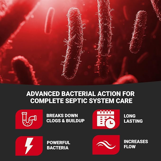 - Roebic, 32oz main line sewer/septic cleaner, concentrated bacterial waste degrading product for any sewer line, clears fats, grease, sludge, & paper, for any household use, whether septic system or sewer.