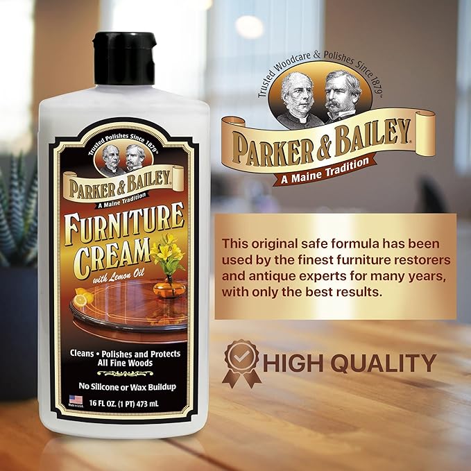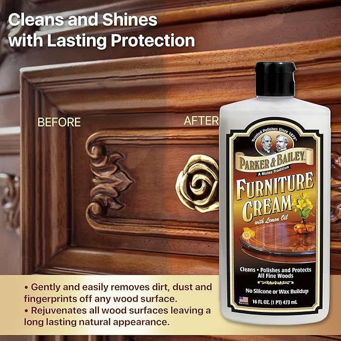 PARKER & BAILEY FURNITURE CREAM - Multisurface Wood Cleaner And Polish Furniture Quick Shine Restorer Protector Kitchen Cabinets Surface Cleaner House Cleaning Supplies Home Improvement, 16oz