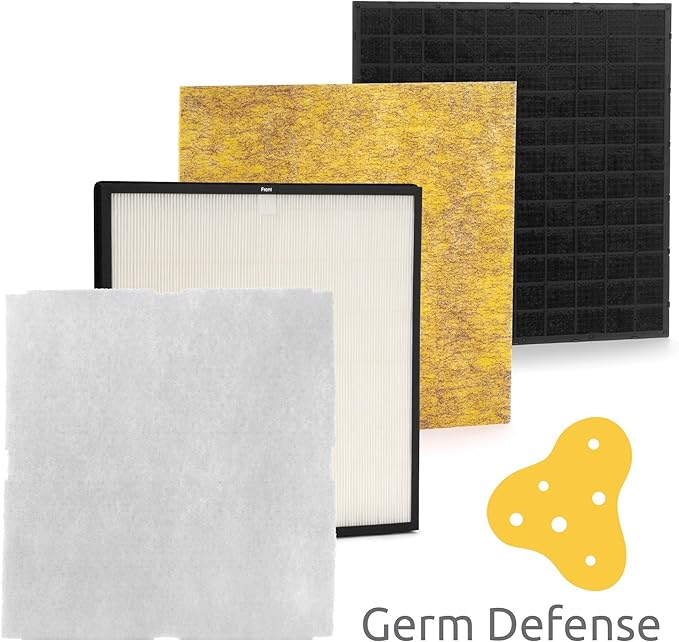- GERM DEFENSE CUSTOMIZED FILTER: Our advanced HEPA air purifier filter effectively traps and reduces airborne bacteria, mold spores, and particles that carry viruses. It's an essential feature for maintaining cleaner, healthier air quality in your home. Designed to improve breathing and reduce allergens, these air purifiers for home and business use are perfect for combating mold and enhancing air quality. It's ideal for households prioritizing clean, fresh air!