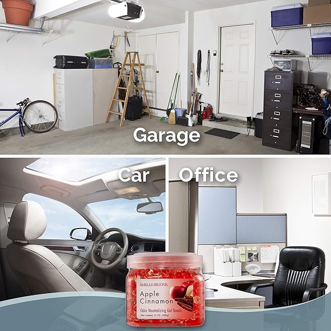 SMELLS BEGONE Odor Eliminator Gel Beads - 12 oz, Pack of 6 - Eliminates Odor in Bathrooms, Cars, Boats, RVs & Pet Areas - Air Freshener - Made with Essential Oils - Apple Cinnamon Scent