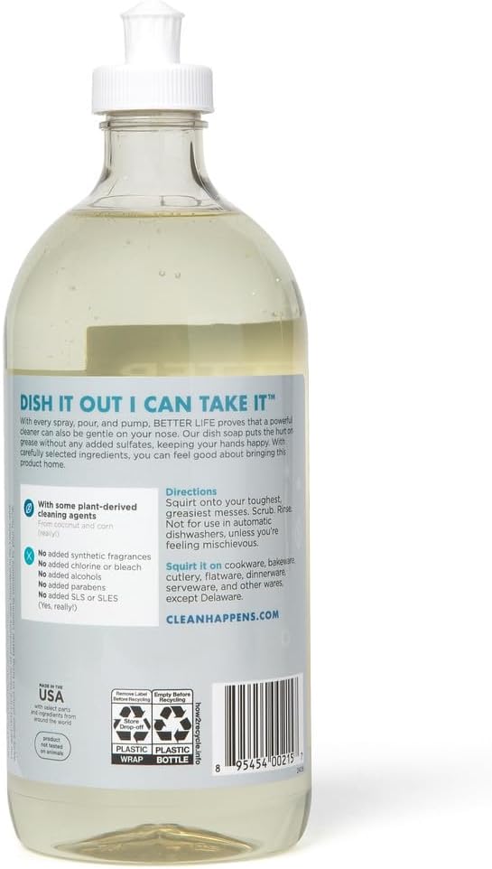 Better Life Liquid Dishwashing Soap for Home & Kitchen Sink - No Gloves Required Kitchen Soap for Sensitive Skin, Unscented, 22 Fl Oz