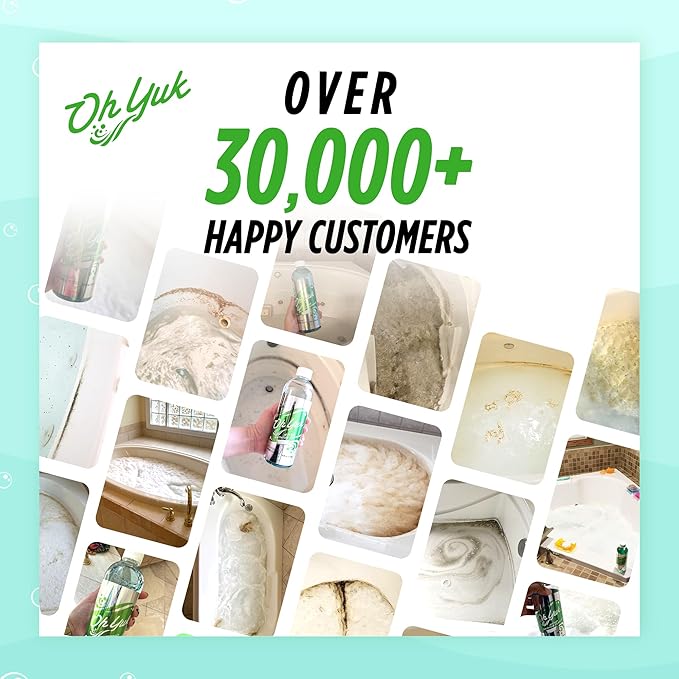 Oh Yuk Jetted Tub Cleaner for Jacuzzis, Bathtubs, Whirlpools, The Most Effective Jetted Tub Cleaner, Septic Safe, 4 Cleanings per Bottle - 16 Ounces
