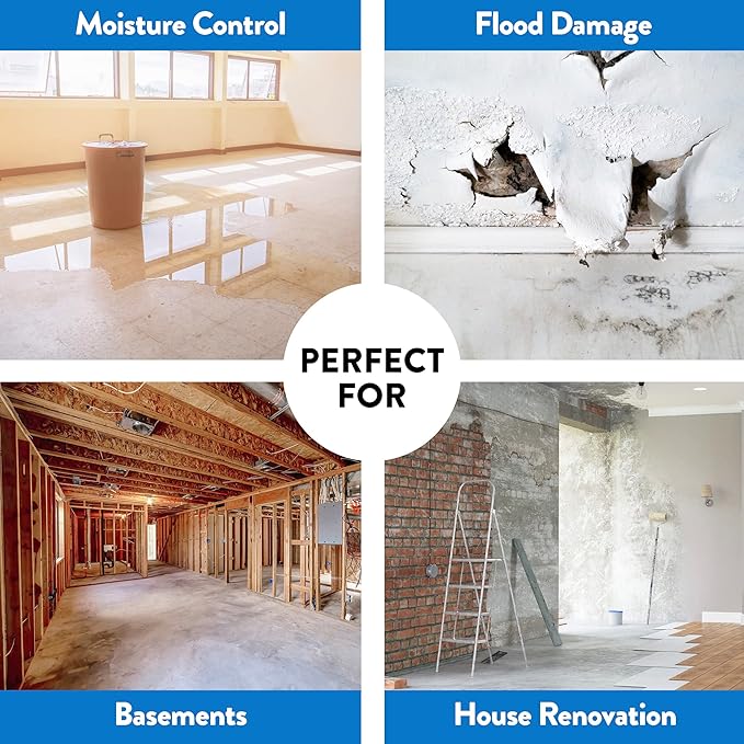 - Portable dehumidifier for basements and garages, that’s easy to store and transport to job sites in need of a moisture remover
