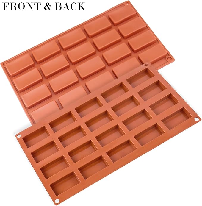 FUNSHOWCASE 20 Cavities Rectangular Chocolate Candy Bar Silicone Mold Rectangle Soap Cake Pan