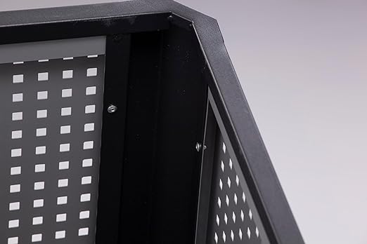 - MODERN STYLING. Evos Outdoor and Indoor Steel Trash Can features four stylish perforated panels on a heavy-duty steel frame with galvanized base to resist rust and corrosion while keeping high traffic areas clean and litter free.