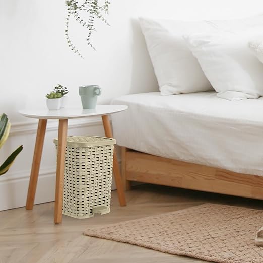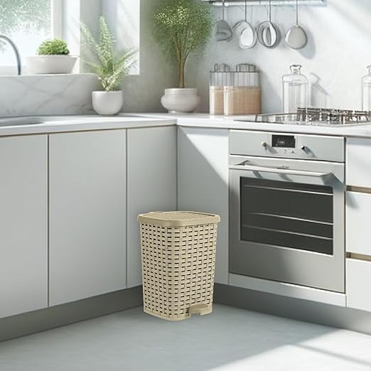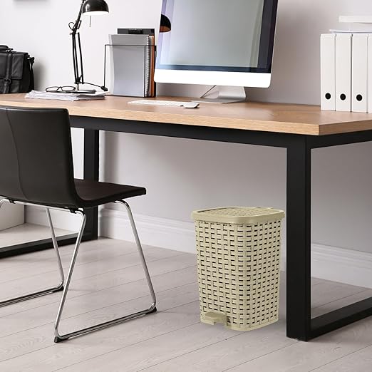 Superior Performance Inc 3.1 Gal. Rattan Style Compact Trash Can (Beige and Brown)