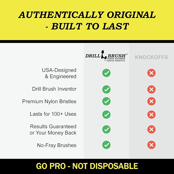 - CRAFTED BY INNOVATORS, TRUSTED BY MILLIONS - THE DRILLBRUSH STORY: Born from a real need and refined through feedback, Drillbrush Power Scrubber products are proudly made by cleaning enthusiasts for cleaning enthusiasts. With millions sold, our brush attachment for power drill lineup reflects a commitment to quality, innovation, and customer satisfaction. Experience the difference with Drillbrush — inventor/innovator of drill attachment scrub brush products