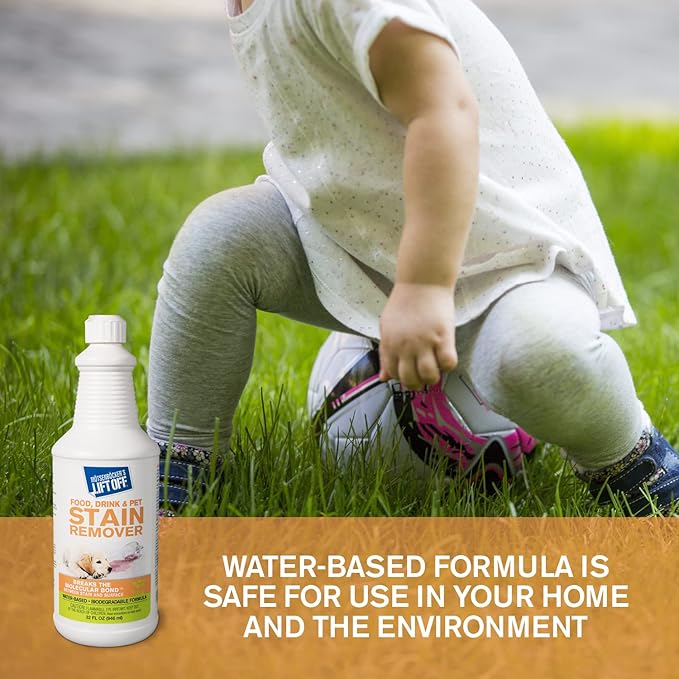 - WORKS ON MULTIPLE SURFACES: Lift Off’s Food, Drink, and Pet Stain Remover is safe to use on carpeting, indoor and outdoor furniture, linens, and fabrics including the interior of your car! Great for at home or at the office.