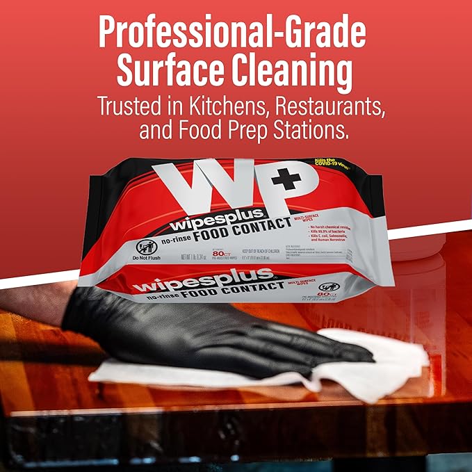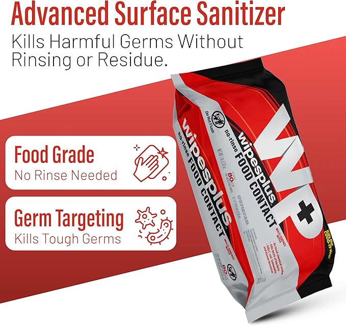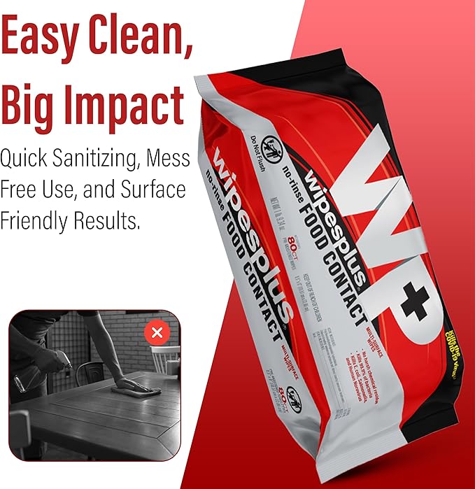WIPESPLUS No-Rinse Food Contact Wipes, Multi-Surface Wipe, Unscented for Home and Business, 960 Count, (12 Packs of 80)
