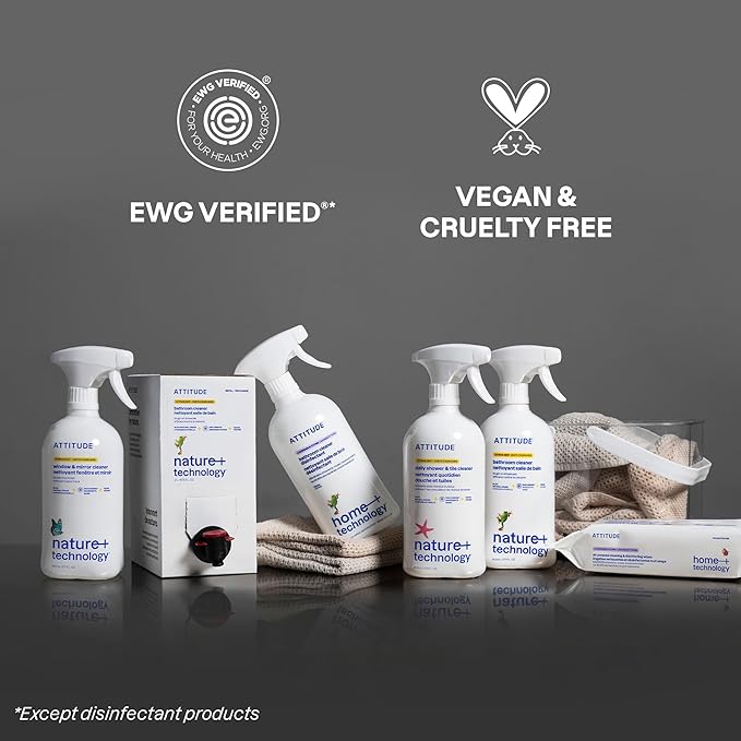 ATTITUDE Shower & Tile Cleaner, EWG Verified, Plant-Based & Vegan Bathroom Spray, Removes Soap Scum & Grime, Citrus Zest Scent, 27.1 Fl Oz
