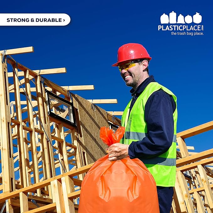 Plasticplace 42 Gallon Trash Bags |3.0 Mil | Orange Heavy Duty Contractor Trash Bags | 33" x 48", 50 Count (Pack of 1)