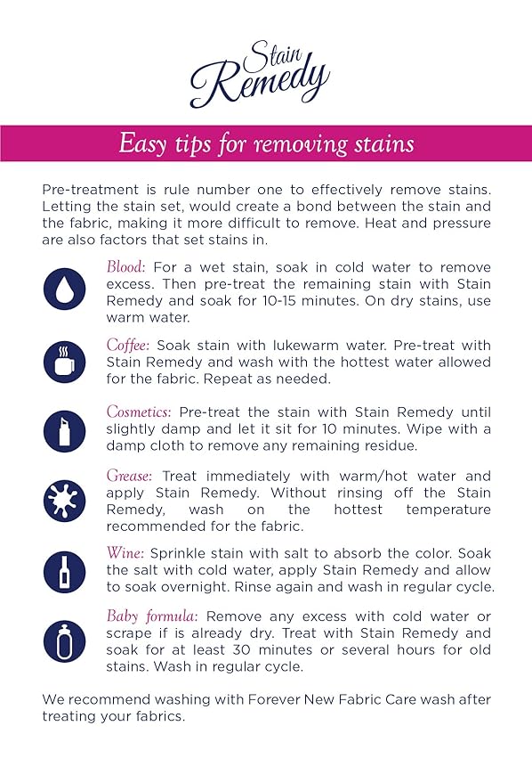 - EASY APPLICATION – Forever New’s Stain Remedy allows you to apply, set, and forget about those pesky stains.