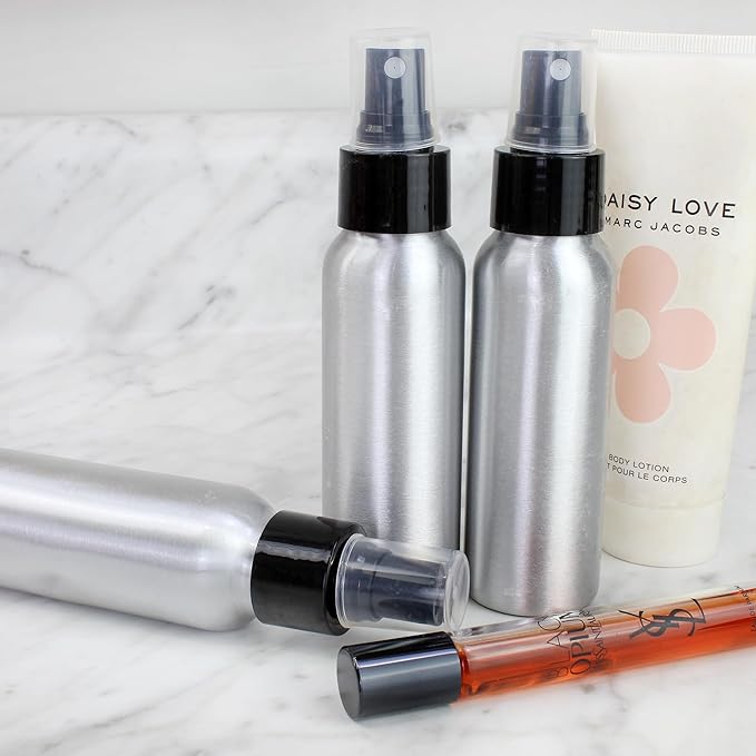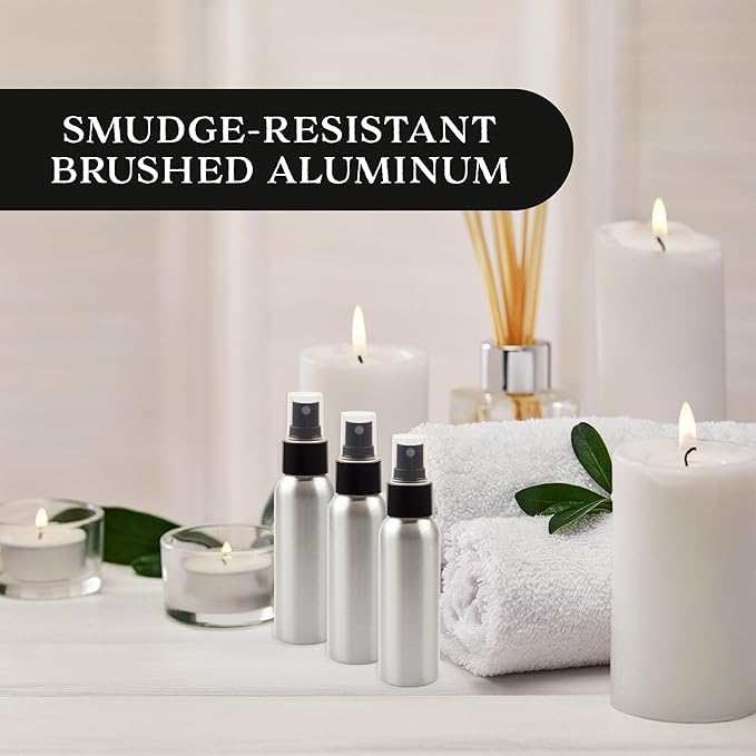 Cornucopia Brands 2-Ounce Aluminum Fine Mist Spray Bottles (6-Pack); Empty Mini Metal Atomizer Bottles, 2.75oz Travel/Purse/Sample Size