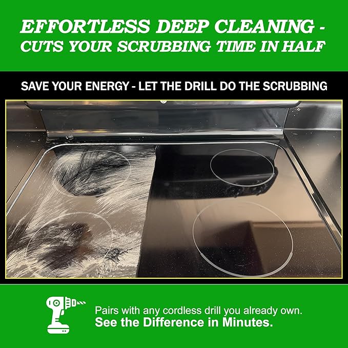 - PERFECT FOR ELECTRIC OR GAS STOVE TOP DEEP CLEANING: Say goodbye to burnt-on food and residue. Use this set with a gas stove cleaner, drill stove cleaner, or electric stove top cleaner brush to scrub surfaces without scratching. These drill brush attachments for cleaning cabinets double as an oven cleaning spin brush, making it perfect for oven doors and ranges. Whether you use it on a flat top stove or gas burners, this cleaning tool restores shine quickly and easily
