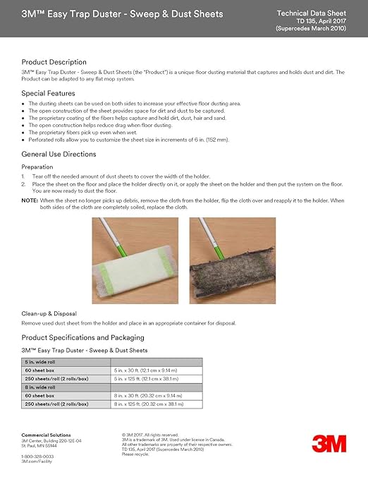 3M Easy Trap Sweep and Dust Sheets, 1 Roll of 250 8" x 6" Sheets, Disposable Easy Sweep Floor Duster, Picks Up 8x More Dirt, Dust, Sand, Hair, Works on Dry or Wet Surfaces, 55654W