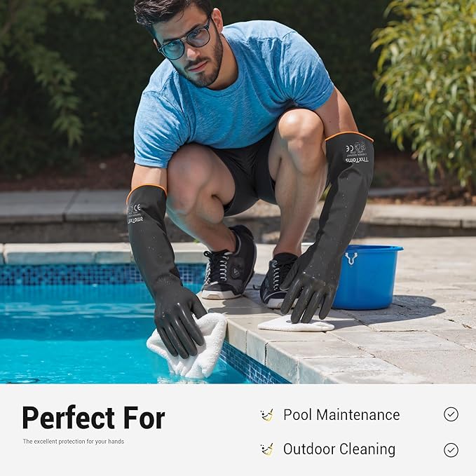 - 【Versatile Length Options】With three length choices, the long rubber gloves provide comprehensive coverage to protect your forearm and arm during activities such as machine repair, yard work, aquarium maintenance, chemical processing, and laboratory tasks.