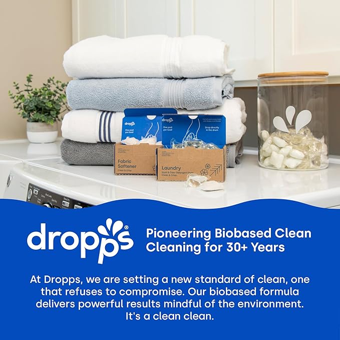 - ABOUT DROPPS: For over 30 years, Dropps has pioneered a cleaner clean – without compromise. As a B -Corp and trusted leader in household cleaning, Dropps delivers cutting-edge cleaning power in revolutionary liquid laundry and powder dish pods. Manufactured in North America. Leaping Bunny approved.