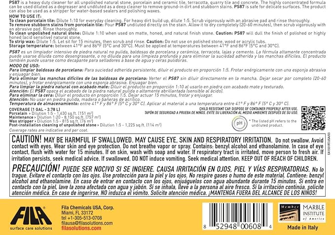 FILA Surface Care Solutions PS87 Heavy Duty Cleaner and Degreaser, 1 GAL (PS87 Heavy Duty Cleaner,), 128 Fl Oz (Pack of 1)