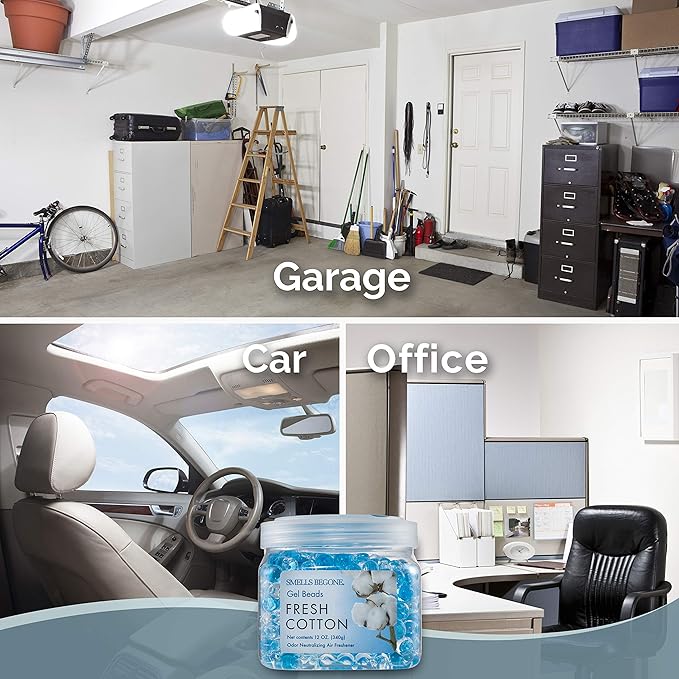SMELLS BEGONE Odor Eliminator Gel Beads - 12 oz, Pack of 6 - Eliminates Odor in Bathrooms, Cars, Boats, RVs & Pet Areas - Air Freshener - Made with Essential Oils - Fresh Cotton Scent