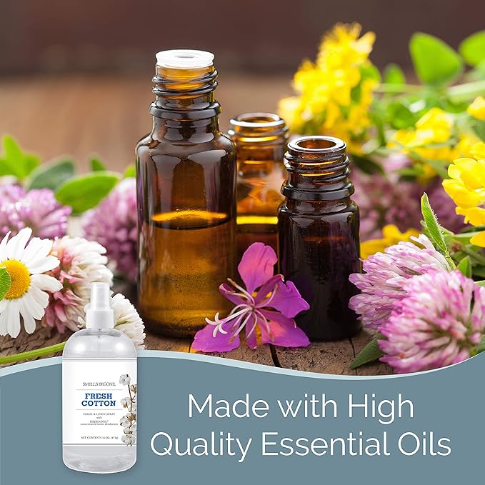 SMELLS BEGONE Air Freshener Home and Linen Spray - Odor Eliminator - Made with Essential Oils - Fresh Cotton Scent - 2 Pack - 16 Ounce