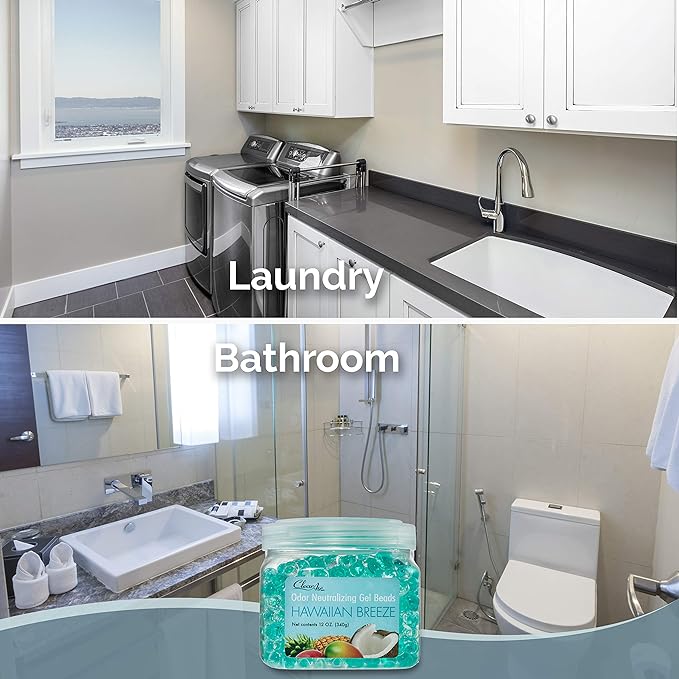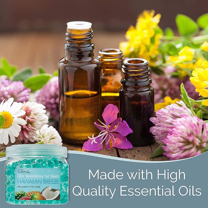 Clear Air Odor Eliminator Gel Beads - 12 oz, Pack of 2 - Air Freshener Made with Essential Oils - Eliminates Odors in Bathrooms, Cars, Boats, RVs & Pet Areas - Hawaiian Breeze Scent