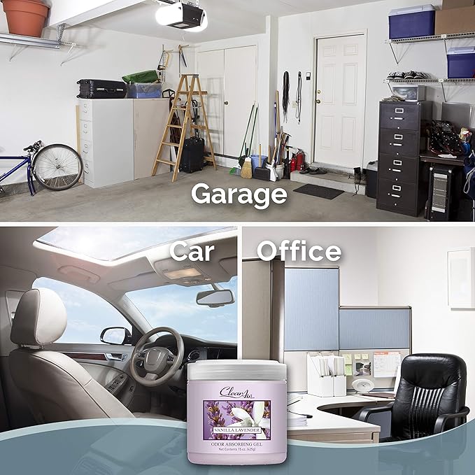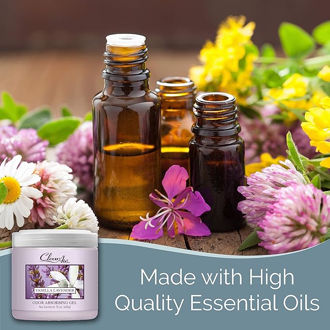 Clear Air Odor Absorber Gel - 15 oz, Pack of 2 - Air Freshener Absorbs and Eliminates Odors in Bathrooms, Cars, Boats, RVs and Pet Areas - Made with Essential Oils - Lavender Vanilla Scent