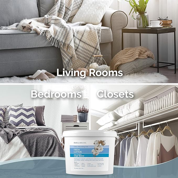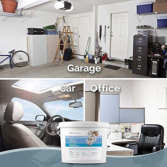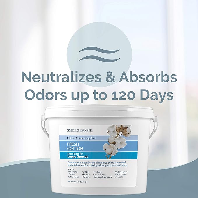 SMELLS BEGONE 1-Gallon Odor Absorber Gel - Air Freshener & Odor Eliminator for Homes, Garages & Commercial Buildings - Industrial Size - Fresh Cotton Scent