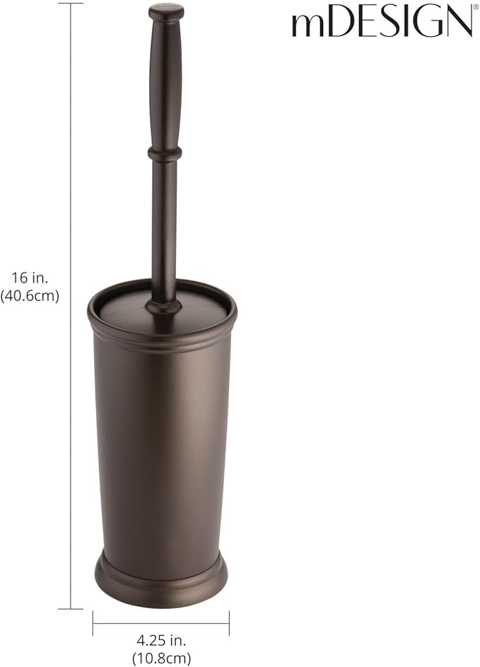 mDesign Toilet Bowl Brush and Holder - Covered Bathroom Toilet Brush - Standing Toilet Bowl Scrubber in Modern Holder - Compact, Space Saving, Deep Cleaning Brush for Toilet - Hyde Collection - Bronze