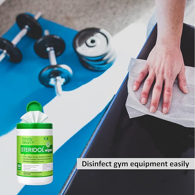 Steridol Wipes Canister, Hard Surface Wipes Multipurpose Cleaning 160 Count Fresh Lemon Scent Industrial Grade For Business Use