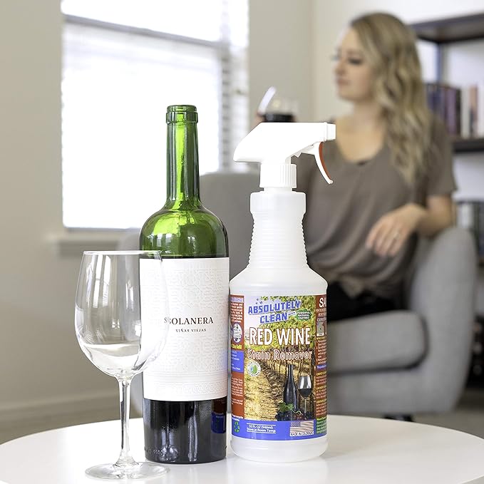Amazing Red Wine Stain Remover – Natural Enzymes Eliminate Wine Stains Fast - Cleans Carpet, Upholstery, Clothing, Table Cloth & More - USA Made (32oz)