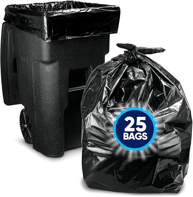 95-96 Gallon Trash Bags Heavy Duty (25 Bags w/Ties Value pack) Extra Large Trash Bags, 90 Gallon, 95 Gallon, 96 Gallon, 100 Gallon