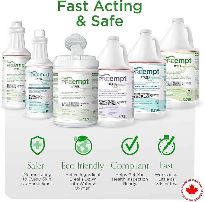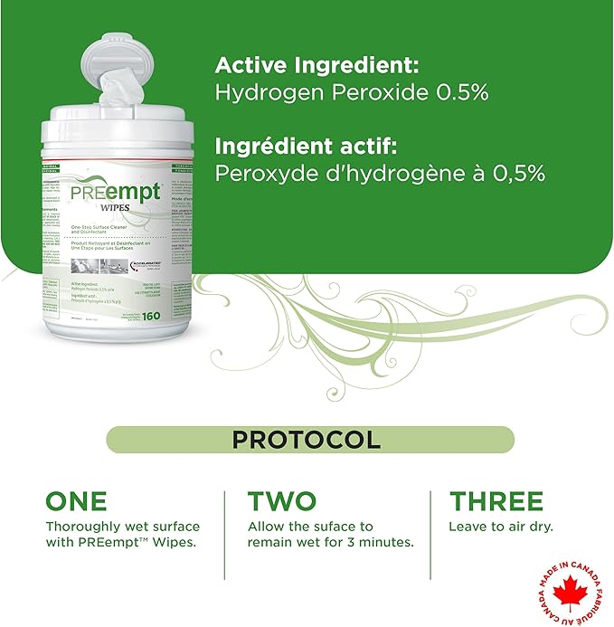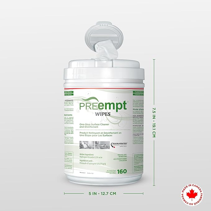 - Preempt One-Step Disinfectant Cleaner Wipes conveniently disinfect surfaces in as little as 1 minute. Easy to use, offering you quick and efficient disinfection every time. Powered by patented Accelerated Hydrogen Peroxide Technology. Only AHP combines unmatched efficacy with environmental integrity and application safety.