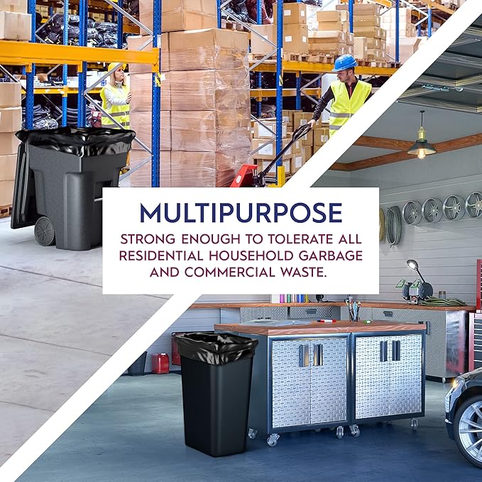 - Tear-Resistant: The last thing anyone needs when cleaning up is cheap plastic bags that rip open and make even MORE of a mess. Our tear-resistant household trash bags are made tough, to hold a variety of objects and stay intact no matter what kind of mess life throws at you. You’re clearing yard waste, storing items, or cleaning up after a party, our black garbage bags are there to help with the heavy lifting!