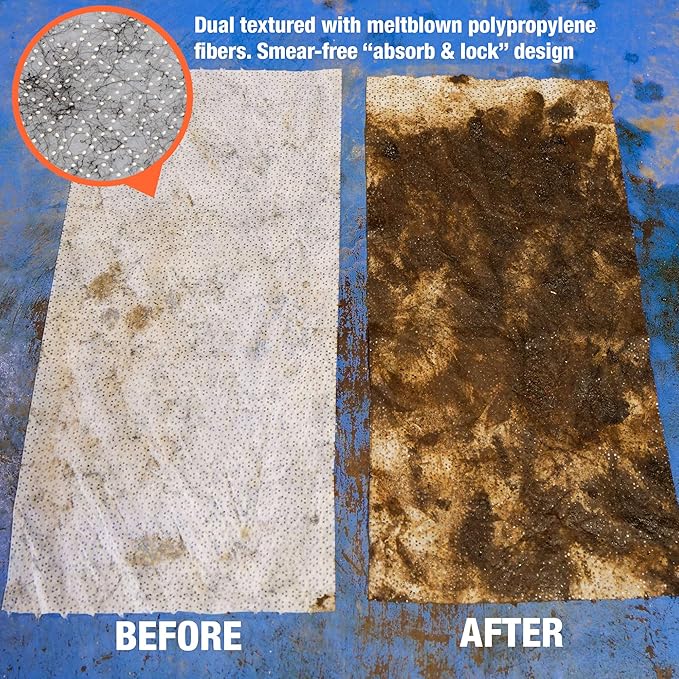 - Dual-textured wipe removes the contaminant into the wipe and away from the surface, reducing smears and speeding clean-up.