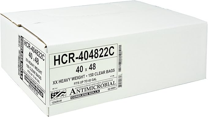 Aluf Plastics High Density Trash Bags, 45 Gallon, 150 Count, 22 Micron (eq), 40" x 48", Clear, for Bathroom, Office, Industrial, Commercial, Janitorial, Municipal, Recycling