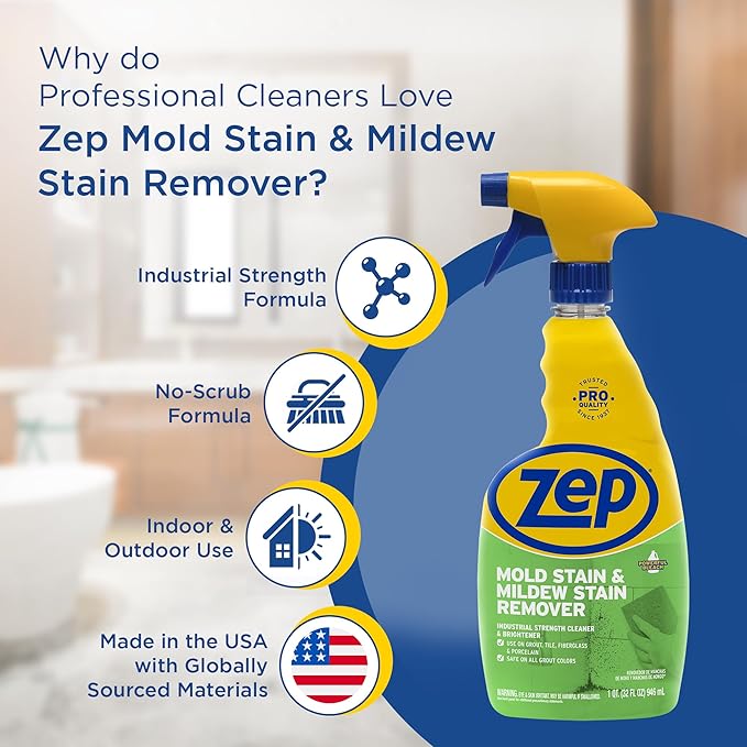 Zep Mold Stain and Mildew Stain Remover - 32 oz (Pack of 12) - ZUMILDEW32 - Experience the Power of our Professional Strength No-Scrub Formula
