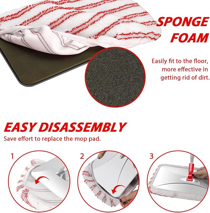 - 【Large Mop Head】The floor mop has wide mop head with thicken sponge, which can fit the floor better and cover more areas, making cleaning more efficient. Floor mop size is 16x8.4“.