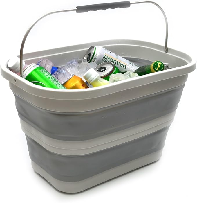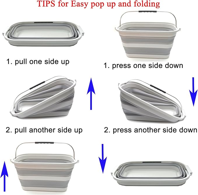 - BPA Free. User friendly by simply pop-up to open when using and collapses to flat for space saving with Expanded size: 17.8 x 11.7 x 10.6(h) inches and its height just 2.4 inches after folded. Save over 70% space when storage. Capacity: 20.8L / 5.49gallon