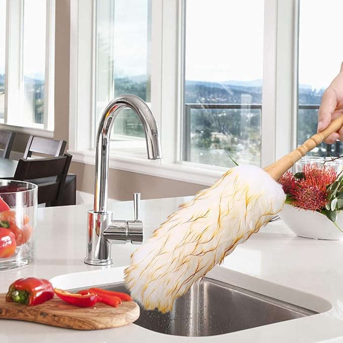 - lambswool duster,pure preminum quality lambswool contains natural lanolin,which attracts and holds dust like a magnet,and soft texture will not stratch surfaces;