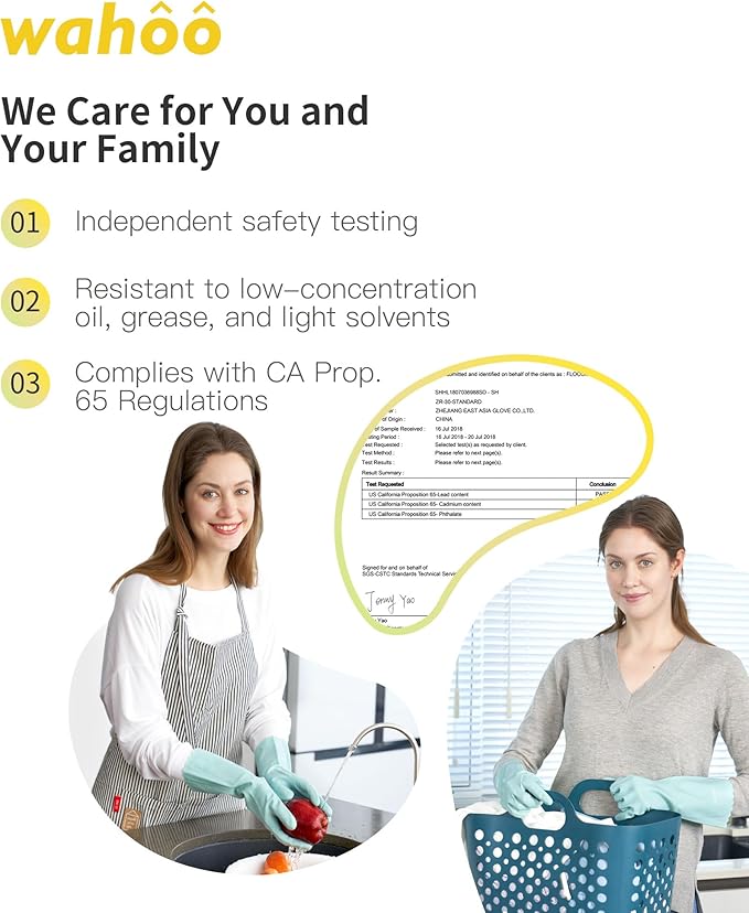 - Safe and Fun - Fashionable design and vivid colors are our unique style. In addition, our cleaning gloves are certificated by Intertek and meet CA Prop.65 regulations.