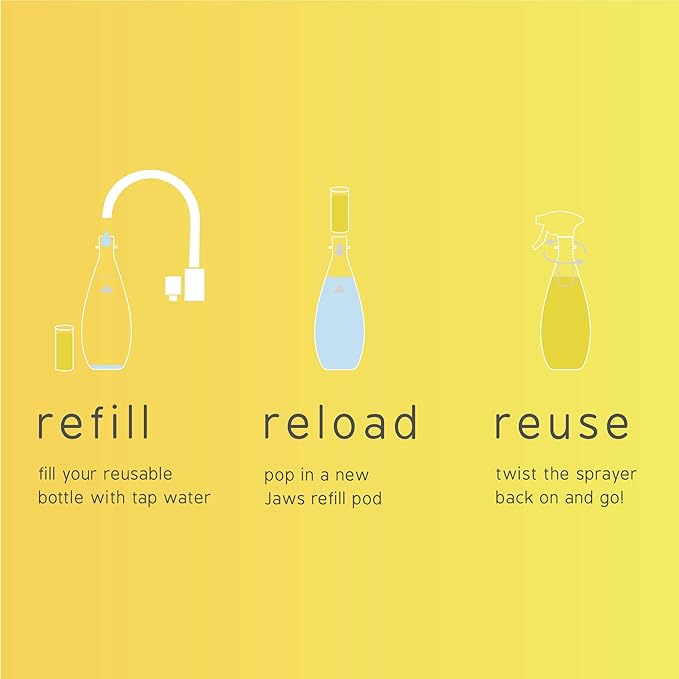 - ECO-FRIENDLY CLEANING SYSTEM: JAWS Refillable Spray Bottles and Refills reduce plastic waste by 83% vs traditional spray bottles.