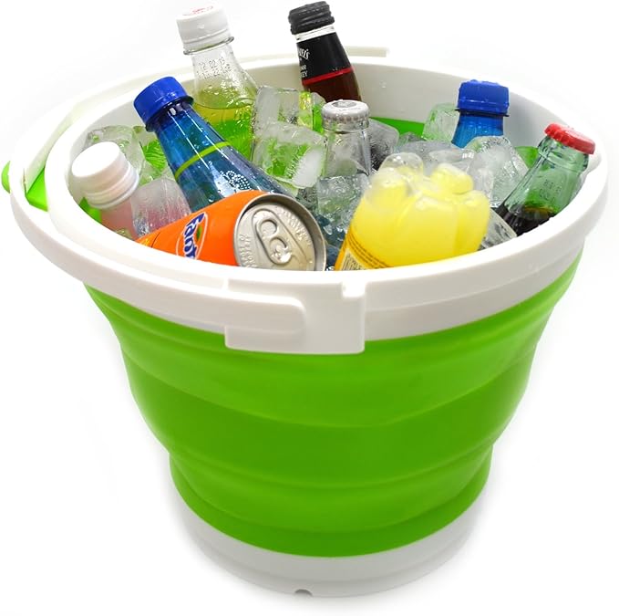 SAMMART Set of 2-10L (2.64Gallon) Collapsible Fishing Bucket Locking Lid, 31cm Dia. (2, Green)