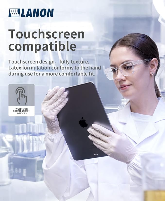 - Next-Level Performance - LANON latex gloves have an Acceptable Quality Level (AQL) of 1.5. Each box comes with 100 pairs, and is available in 4 different sizes: small, medium, large, and xl.