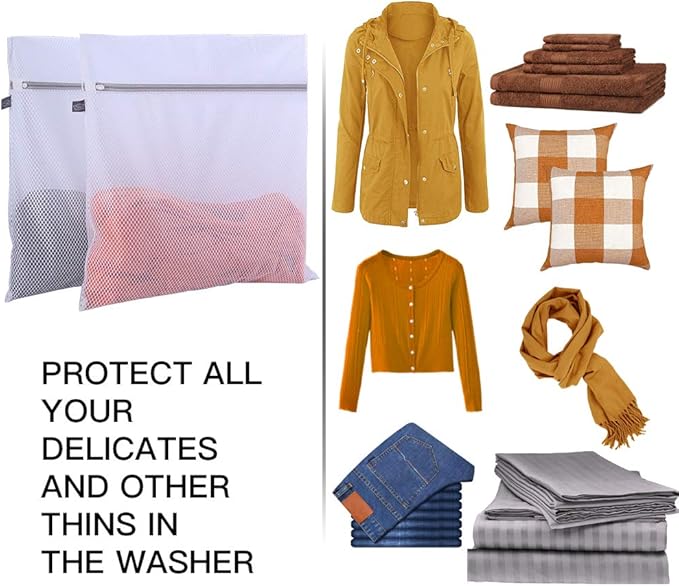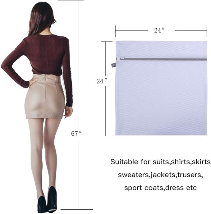 - 【Super Big Size】: Our extra large mesh wash bags is 2pcs 24 inches X 24 inches. This large washing bag can meet the washing needs of many people. It has large space, make washing more adequate , more clean. Suitable for washing Clothes, Jeans and other Large Clothing, As well as Bath Towels, Bed Sheets, Tablecloth, Curtains and other Household Items. Laundry bag