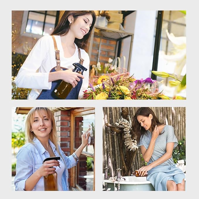 - Multiple Use: Glass spray bottles are leak-proof and meet your needs for household cleaning solutions, watering plants, environmental moisturizing, cooking, making fragrances and so on. Roller bottles can be filled with essential oils, aromatherapy for personal care.
