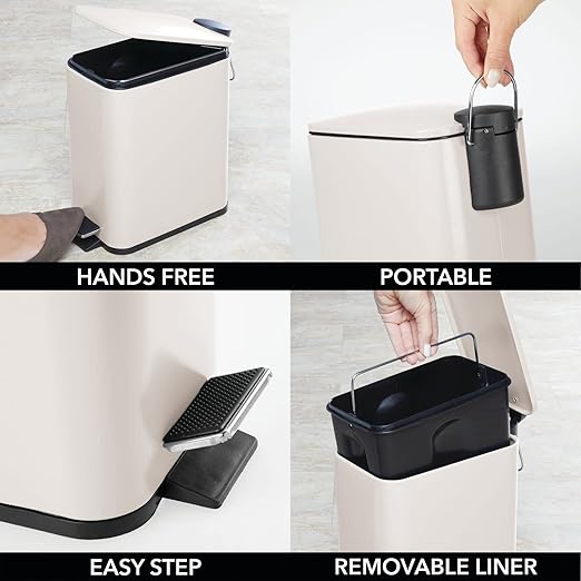 mDesign Rectangular Pedal Bin – 5 L Metal Waste Bin with Pedal, Lid and Plastic Bucket Insert – Household Rubbish Bin for Bathroom, Kitchen and Office – Beige