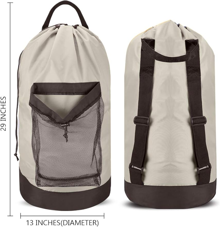 Dalykate Backpack Laundry Bag, 115L Large Hamper with Shoulder Straps, Drawstring Closure, Mesh Pocket, Khaki
