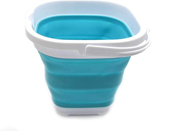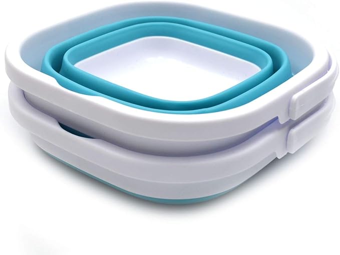 SAMMART Set of 2-2.6L (0.68 Gallon) Super Mini Sqare Collapsible Plastic Bucket - Foldable Square Tub - Portable Fishing Water Pail - Space Saving Outdoor Waterpot (2, Bright Blue)