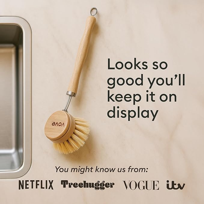 - POWERFUL CLEANING WITH NATURAL MATERIALS: Upgrade your dishwashing experience with our Vove Bamboo Dish Brush, featuring plant-based sisal fiber bristles and a long-lasting wooden handle. It's the ideal eco-friendly solution for scrubbing pots, pans, and dishes while keeping your kitchenware safe.