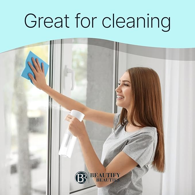 BeautifyBeauties Hair Spray Bottle – Ultra Fine Continuous Water Mister for Hairstyling, Cleaning, Plants, Misting & Skin Care (White, 6.8 Ounces)